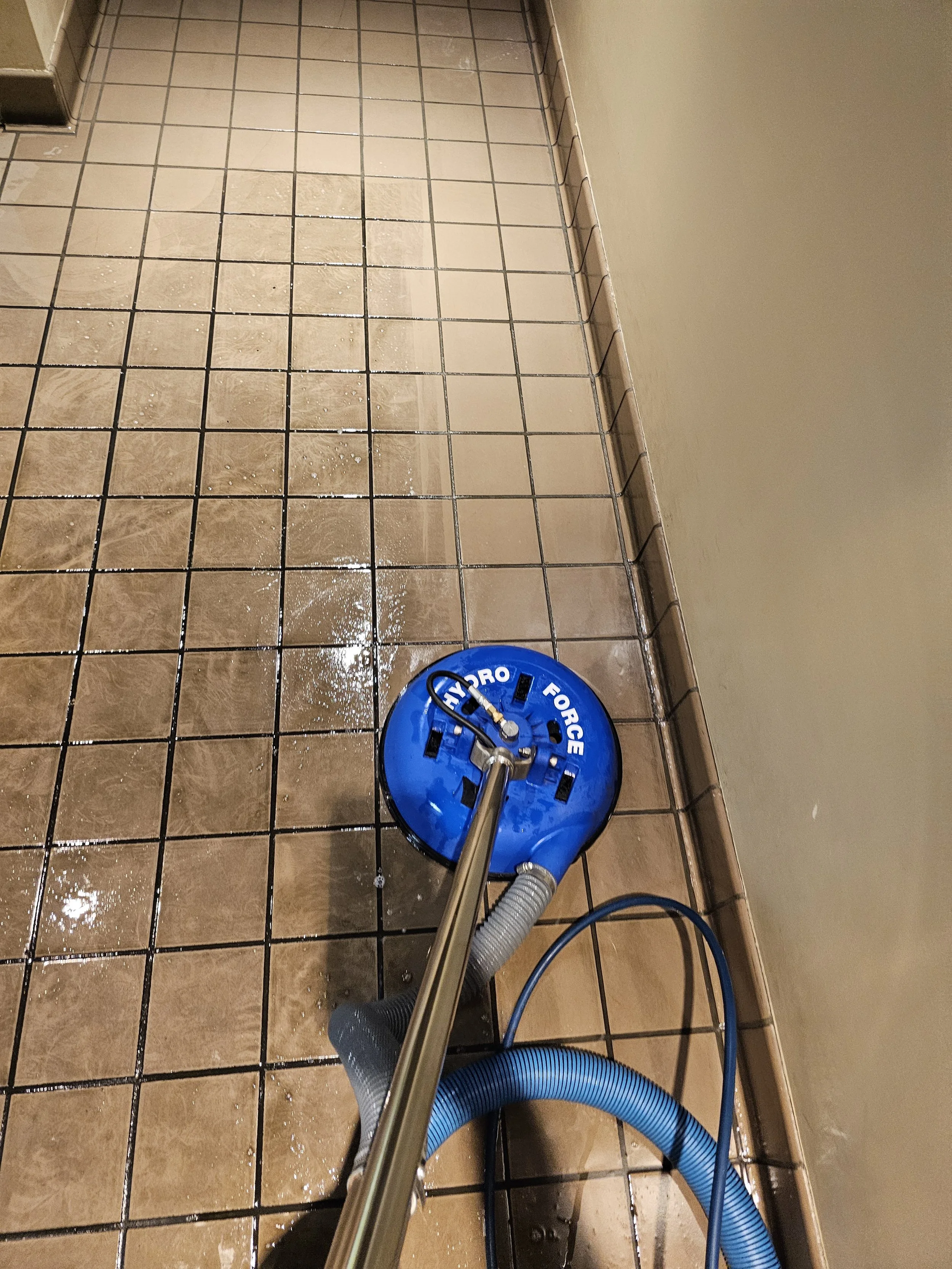 Tile and grout cleaning. 240°F, up to 3000PSI, and that super vacuum from the carpet cleaning. Nothing stands a chance against us.